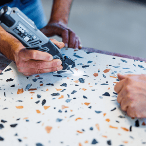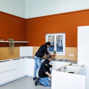 Onze collega’s in montage en logistiek leren vooral door te doen. In onze praktijkruimte leer je daarom niet alleen hoe iets moet, maar ook de fijne kneepjes van het vak in een echte keukenopstelling. Je ontdekt de verschillen tussen onze materialen en leert waar je in de praktijk op moet letten. Opleider Eric zorgt er met zijn jarenlange kennis en ervaring voor dat je stap voor stap groeit in het vak.